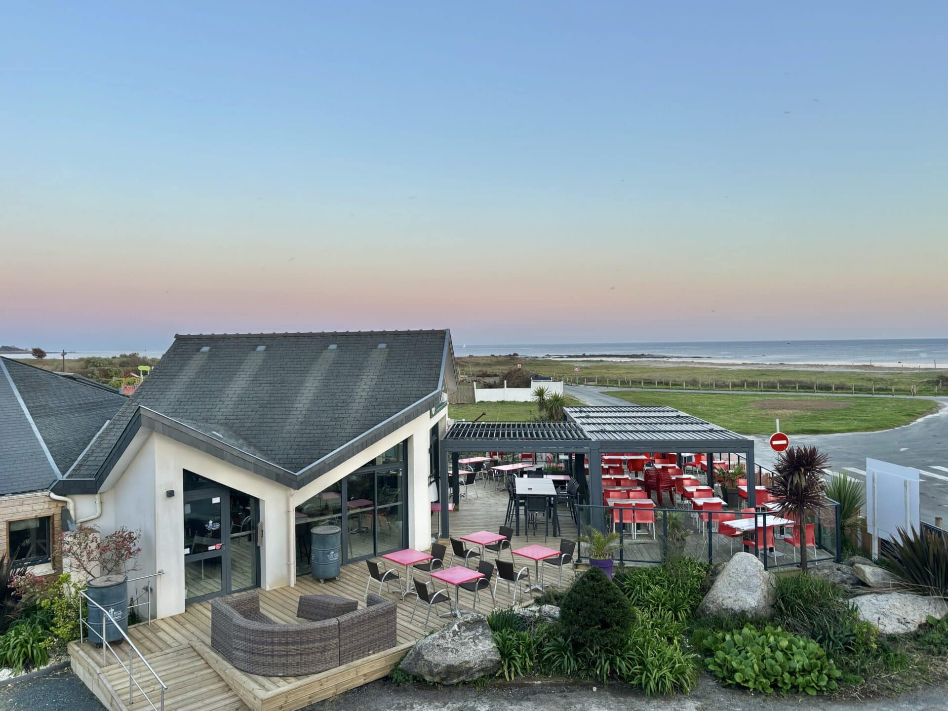 A l’image du camping Le Grand Bleu duquel il dépend, le bar/restaurant est un véritable écrin de sérénité. Retiré juste derrière la plage du Ster, il offre à ses visiteurs un cadre hors du commun, bercé par la douceur du sable fin, le clapotis des vagues, et le bleu intense d’une mer aux allures de Caraïbes, tout cela sous le regard bienveillant du mystérieux archipel des Etocs.